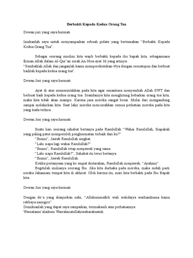 Pidato tentang berbakti kepada orang tua beserta hadisnya, teks ceramah . Pin di alex pin di teks pidato berbakti kepada orang tua contoh teks ceramah singkat . Contoh pidato berbakti kepada orang tua dan guru. Dan ayo, berbakti kepada kedua orang tua kita. Dalam video:vinda nofitasari (kelas xii ips yang baru saja lulus dari ma abdullah).